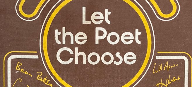 I picked up ‘Let the Poet Choose’ (edited by James Gibson) from a bookshop in Falmouth at New Year. It’s from 1973, looks like a school anthology and has an authentically 70s dull brown cover. The idea is that each poet has chosen and introduced two of their own poems. Alphabetically organised, always the most democratic arrangement.
