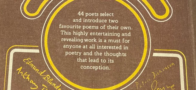 Let the Poet Choose, a 1973 British anthology in which each poet chooses two of their own poems and introduces them. As I said in my previous post, even where the poems don’t convince me, the prose can still be intriguing, the sound of poets trying to make sense of themselves.